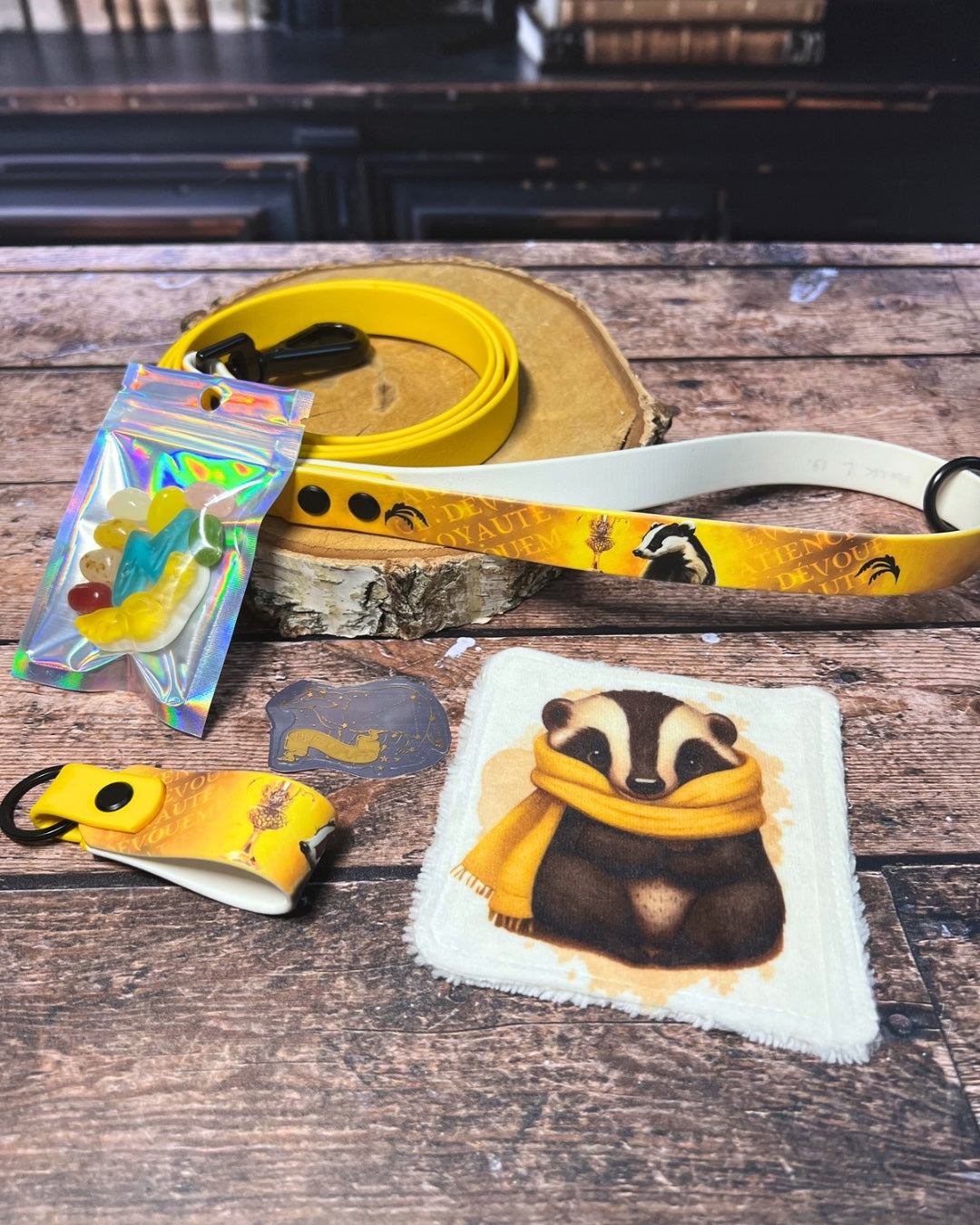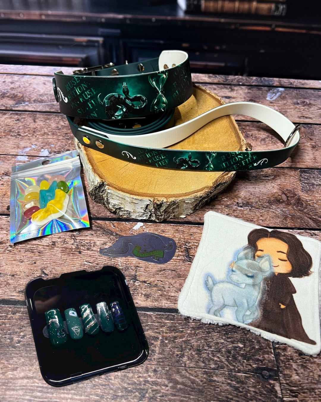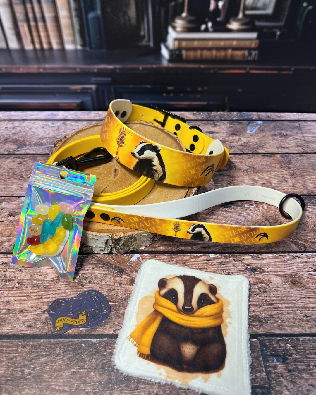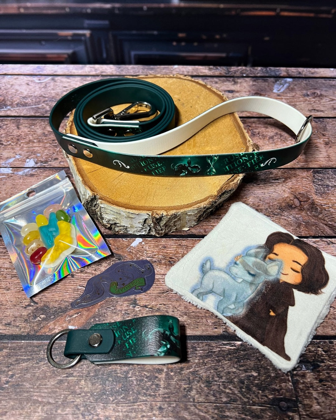 Box de Noël pour chiens, box magique chien, accessoires pour chiens artisanaux, collier en biothane UV, laisse en biothane, idée cadeau chien, box cadeau Noël chien, univers magique chien, box thème sorcier.