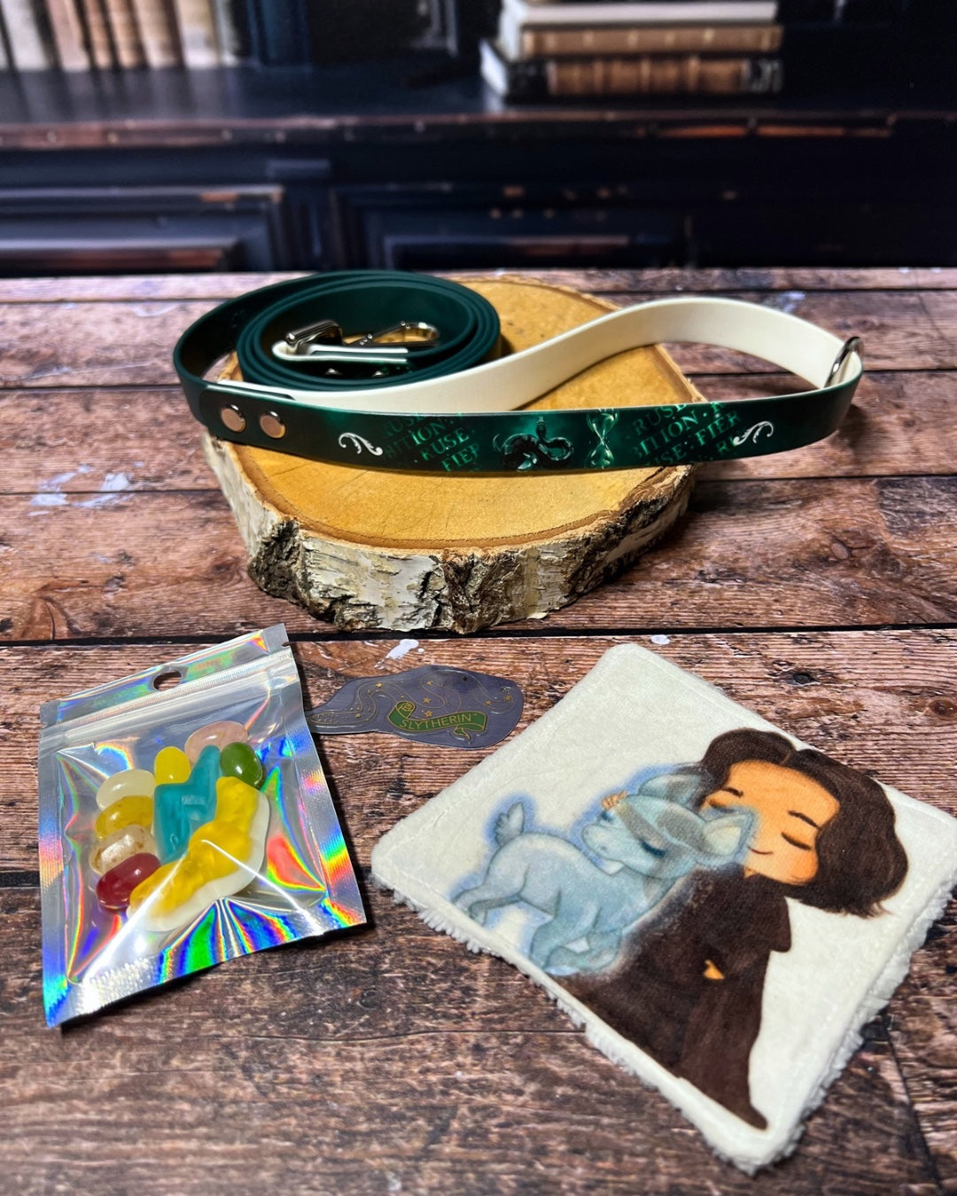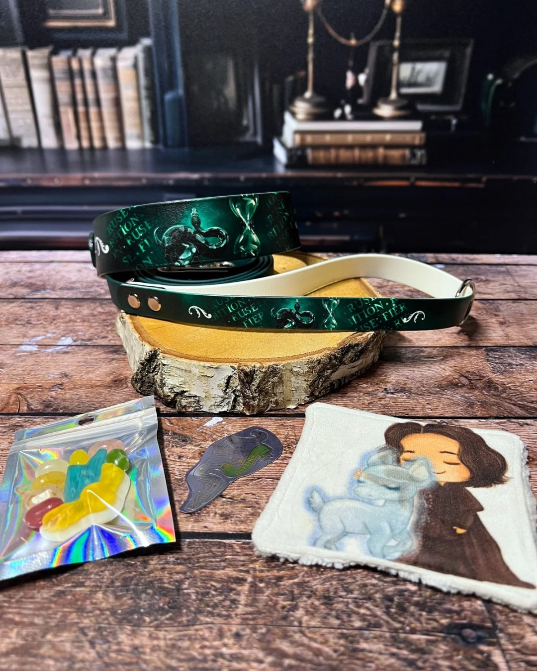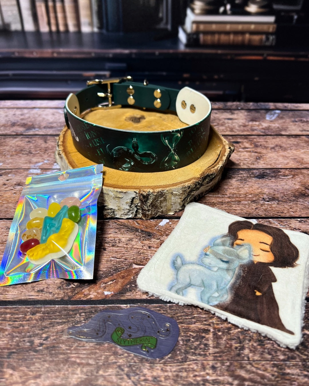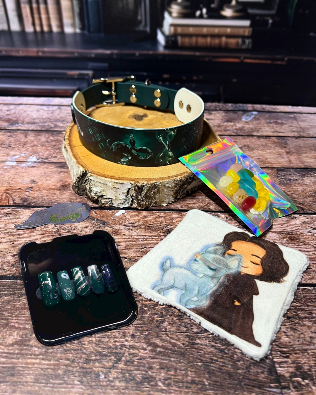 Box de Noël pour chiens, box magique chien, accessoires pour chiens artisanaux, collier en biothane UV, laisse en biothane, idée cadeau chien, box cadeau Noël chien, univers magique chien, box thème sorcier.