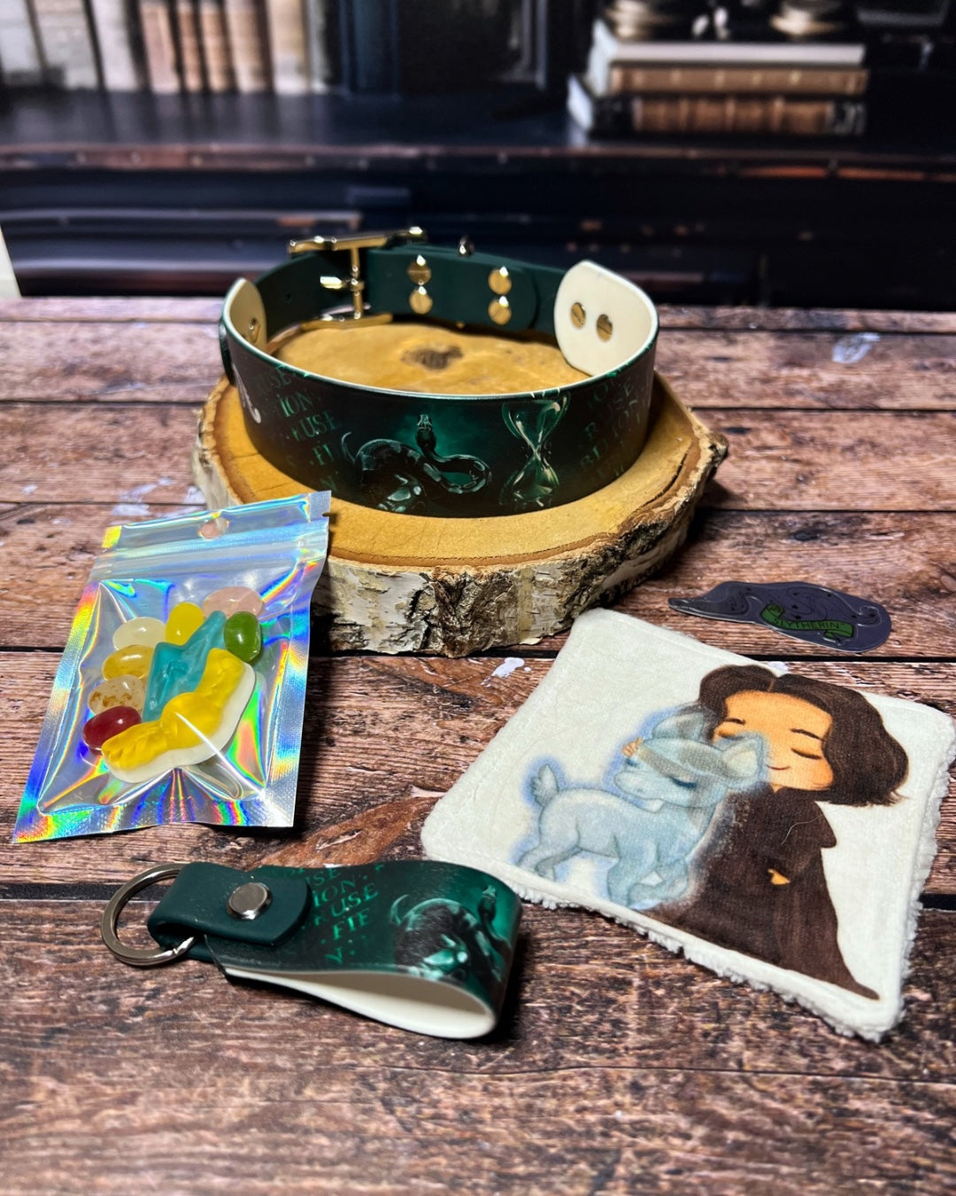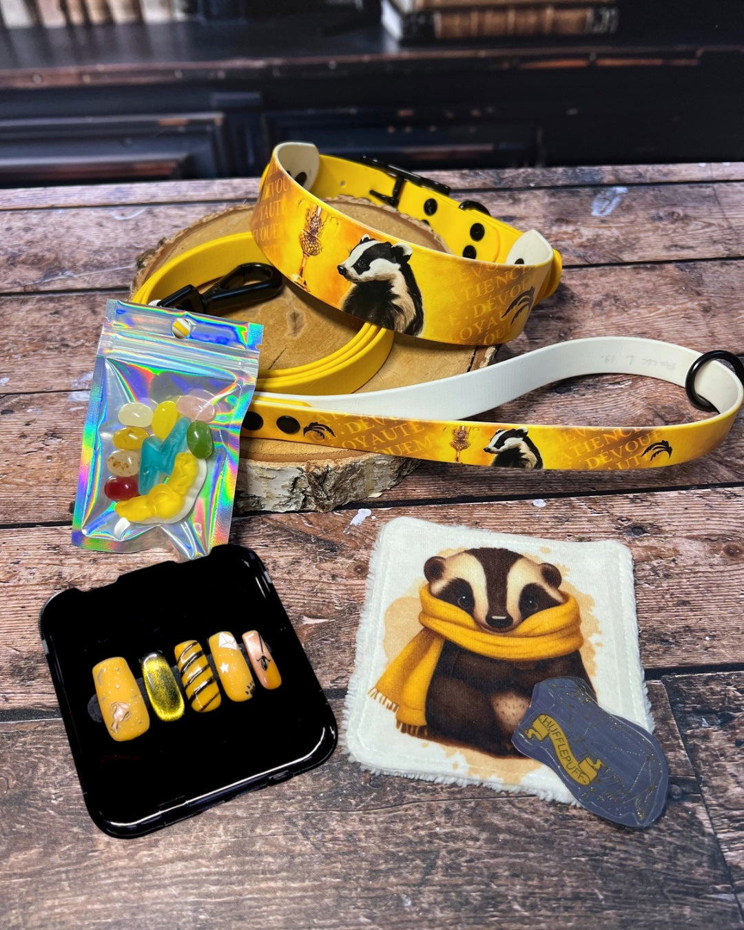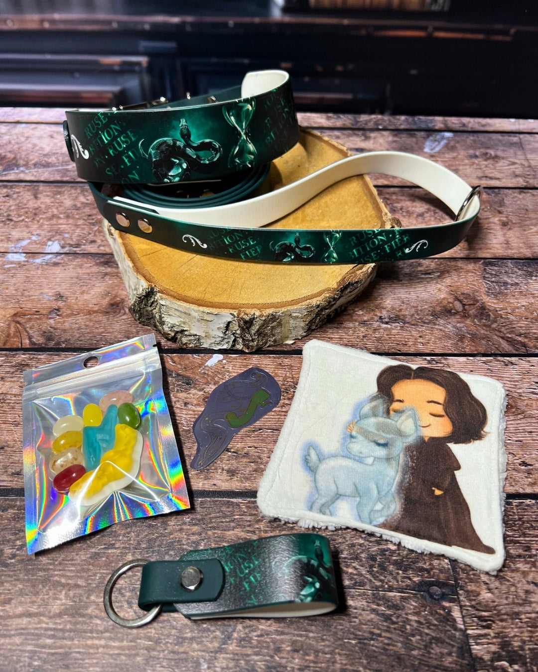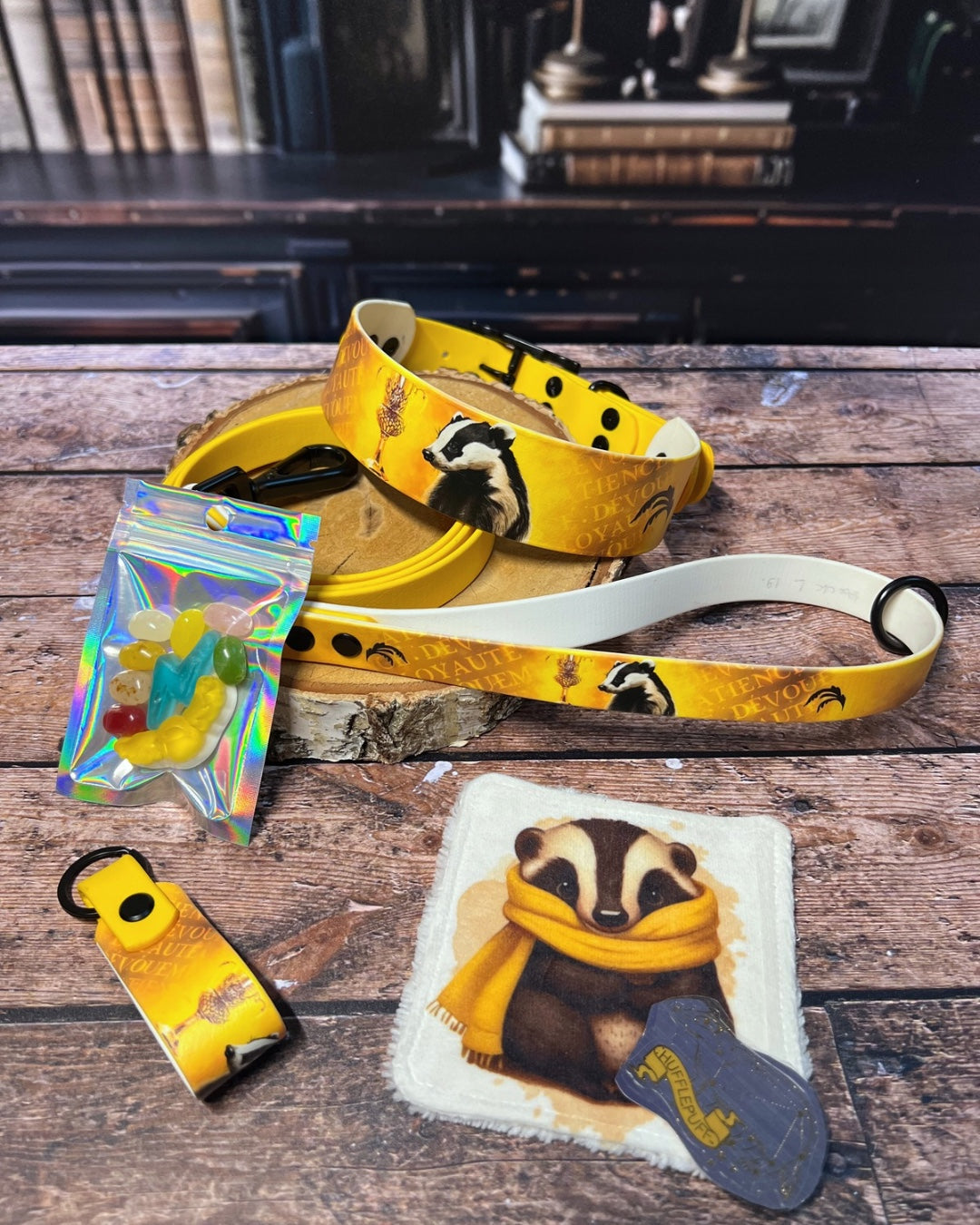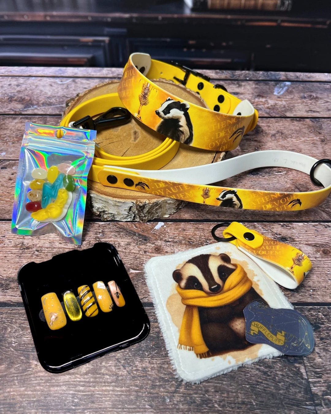 Box de Noël pour chiens, box magique chien, accessoires pour chiens artisanaux, collier en biothane UV, laisse en biothane, idée cadeau chien, box cadeau Noël chien, univers magique chien, box thème sorcier.