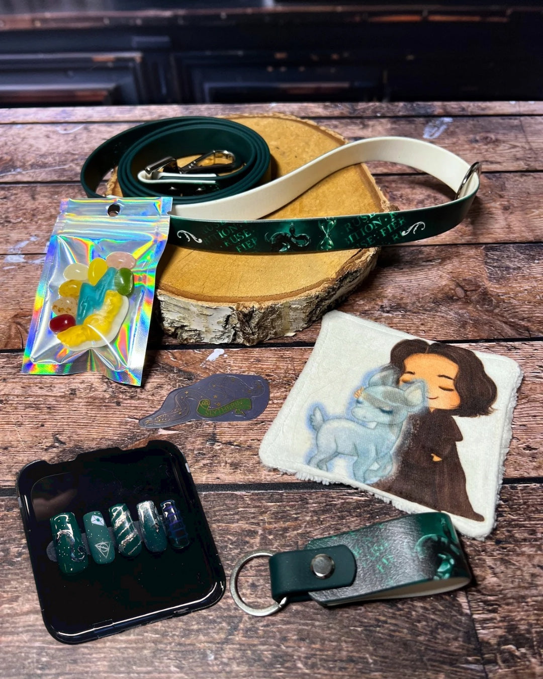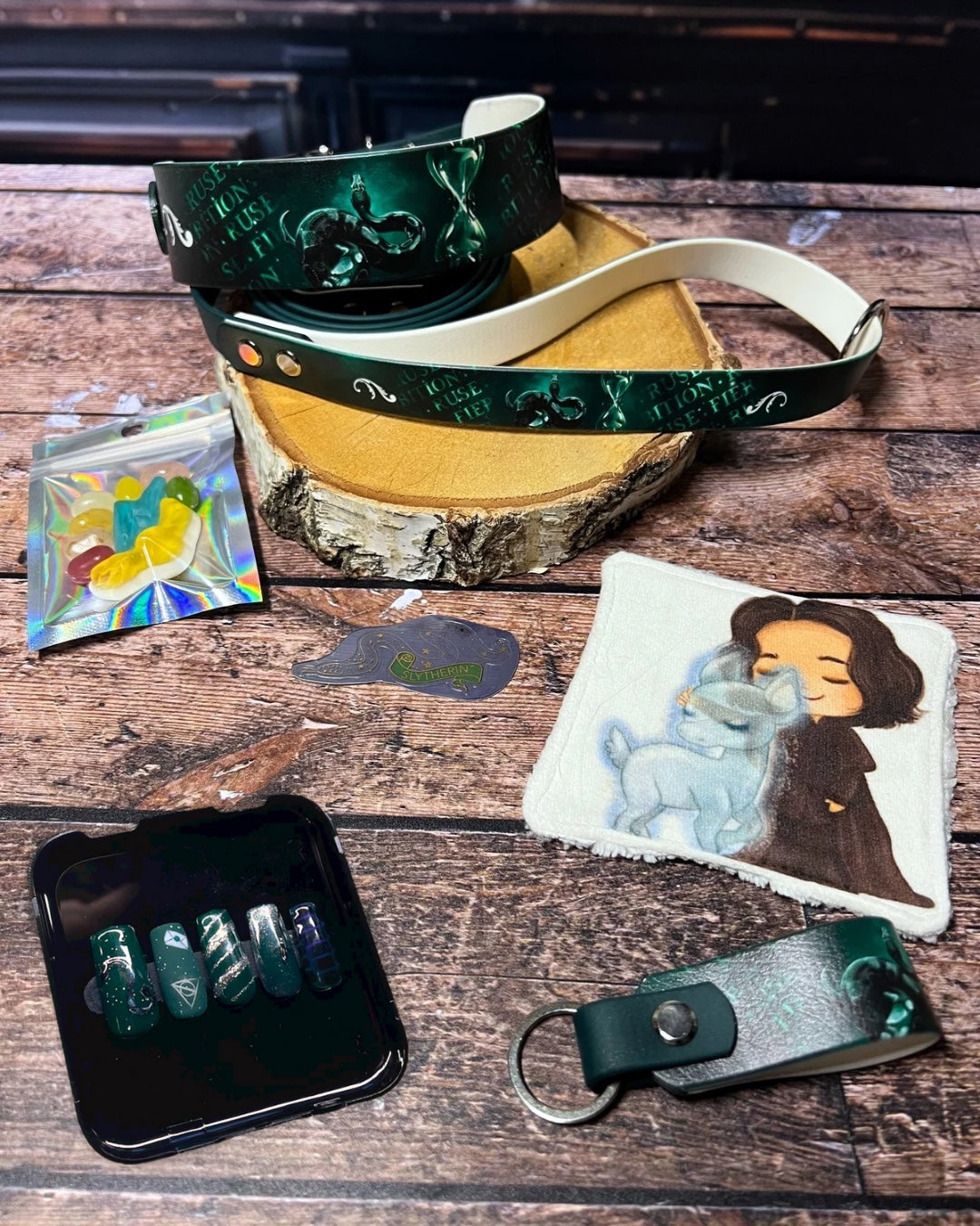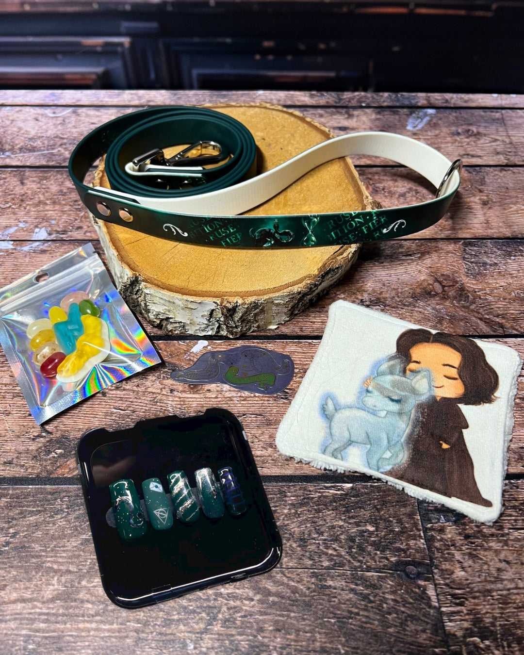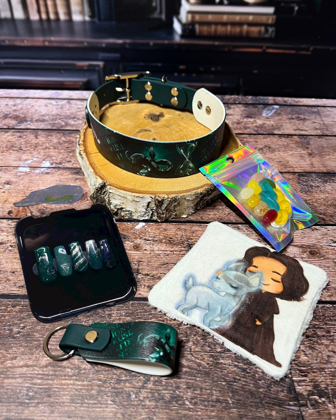 Box de Noël pour chiens, box magique chien, accessoires pour chiens artisanaux, collier en biothane UV, laisse en biothane, idée cadeau chien, box cadeau Noël chien, univers magique chien, box thème sorcier.