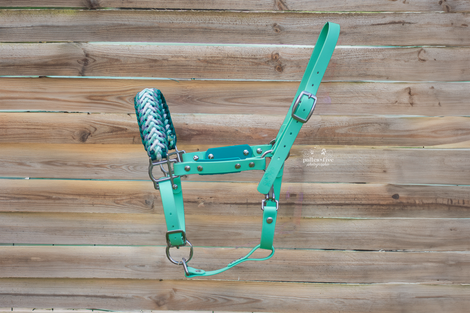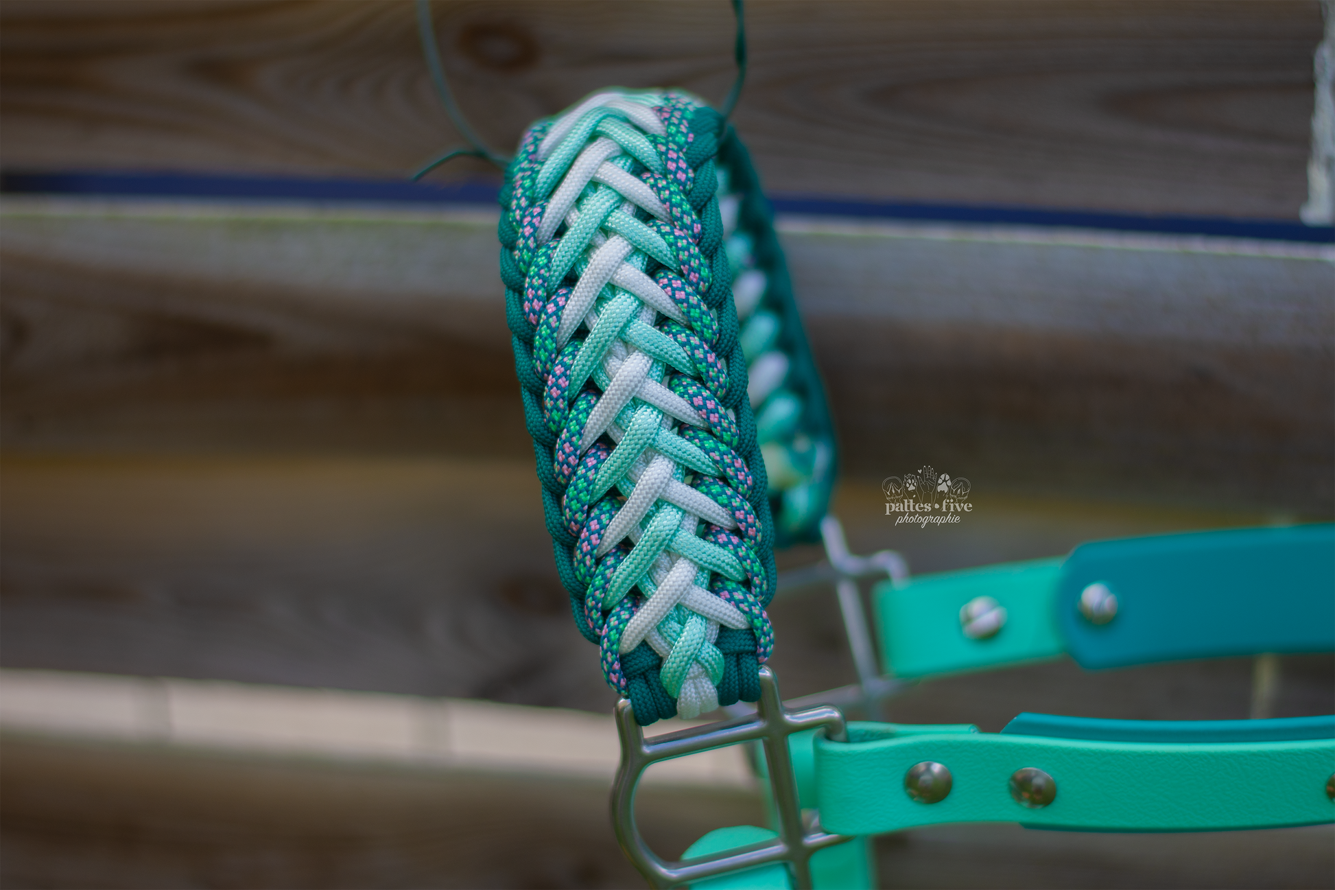 Licol taille cob (taille petit), tressage paracorde Alfar, bouclerie acier inoxydable